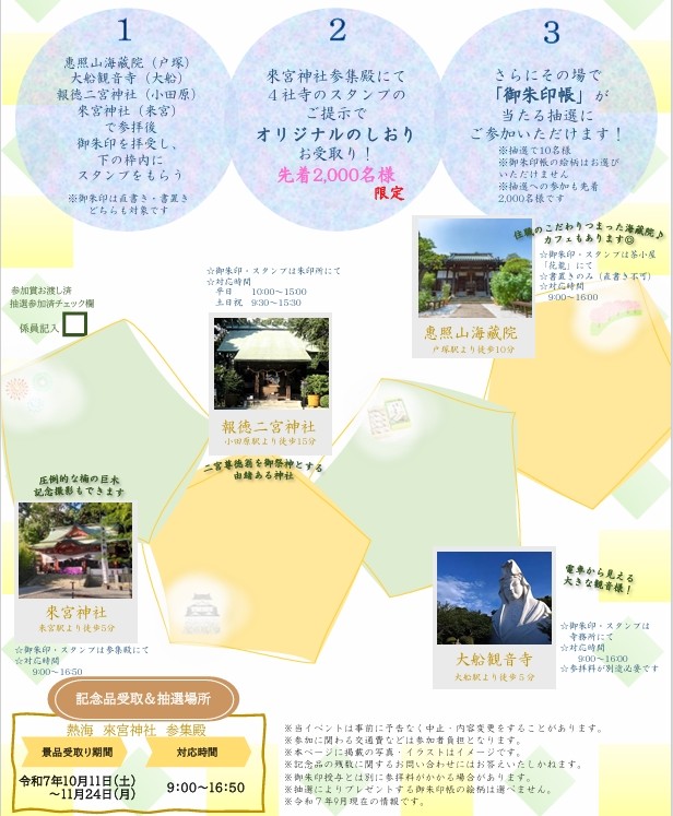 【惠照山海藏院】【大船観音寺】【報徳二宮神社】【熱海來宮神社】にて